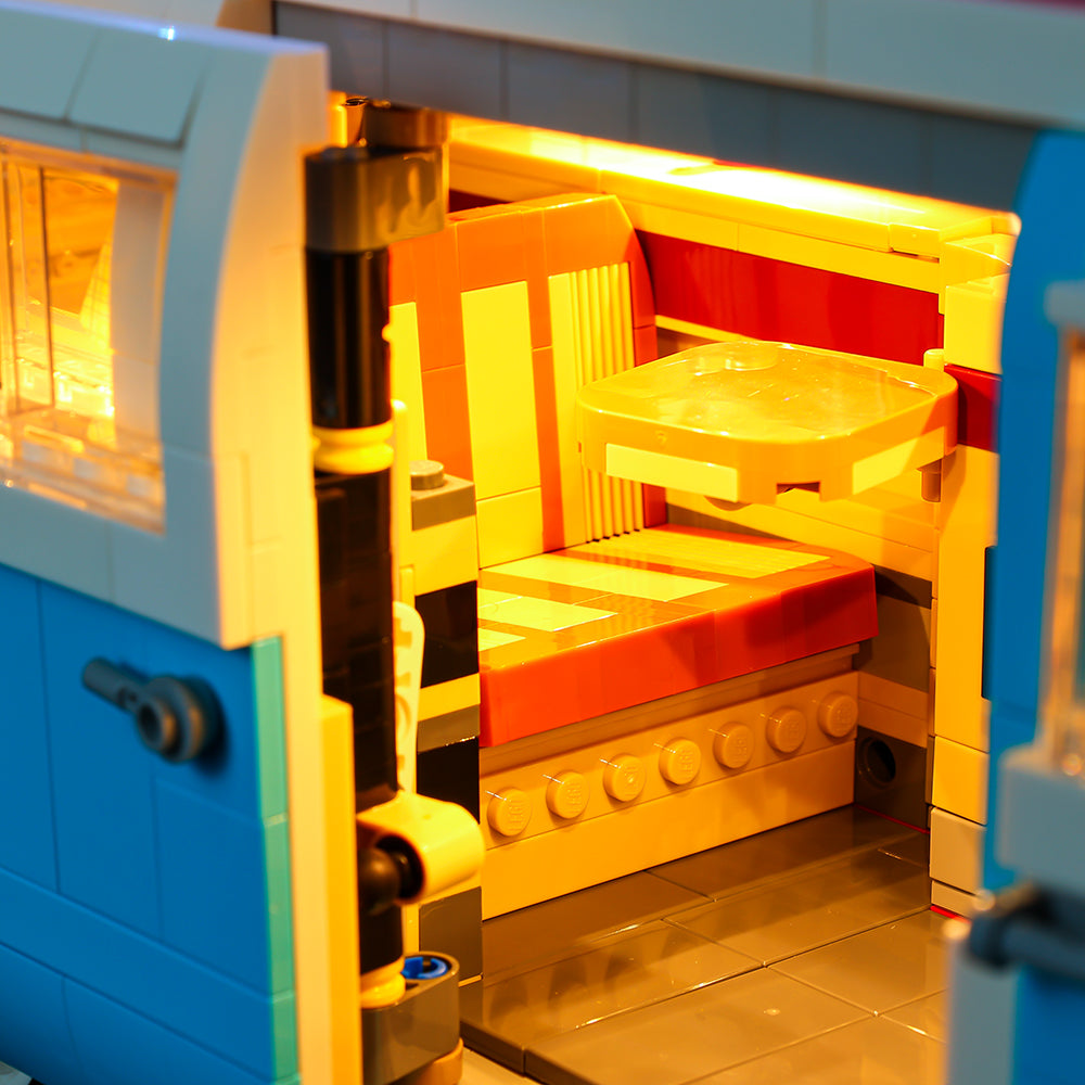 Unlike the previous version, this LEGO Volkswagen T2 Camper Van 10279 set features new details, like a sliding door, a new recognizable face, new paint color, and more. It is also more extensive than the previous version. Other features of this vehicle include a camping interior with a fridge, sink, a teapot, opening cabinets, and a sink. There is working steering under the hood. To help you enjoy your beach experience, the set comes with a surfboard and folding chairs. Enjoy the starry skies by sitting on the folding rear bench. This toy makes a perfect holiday or birthday gift for LEGO fans of all age groups. Organize some fun-filled road adventures by building the LEGO Volkswagen T2 Camper Van 10279 set. Customize it with our classic LEGO LED Lights to enhance it.